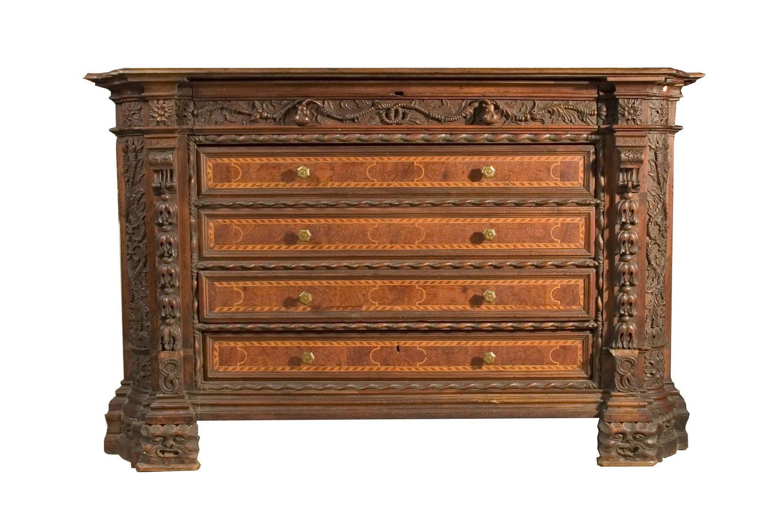 Antique Italian Chest of Drawers from the 1500s in Richly Carved Walnut