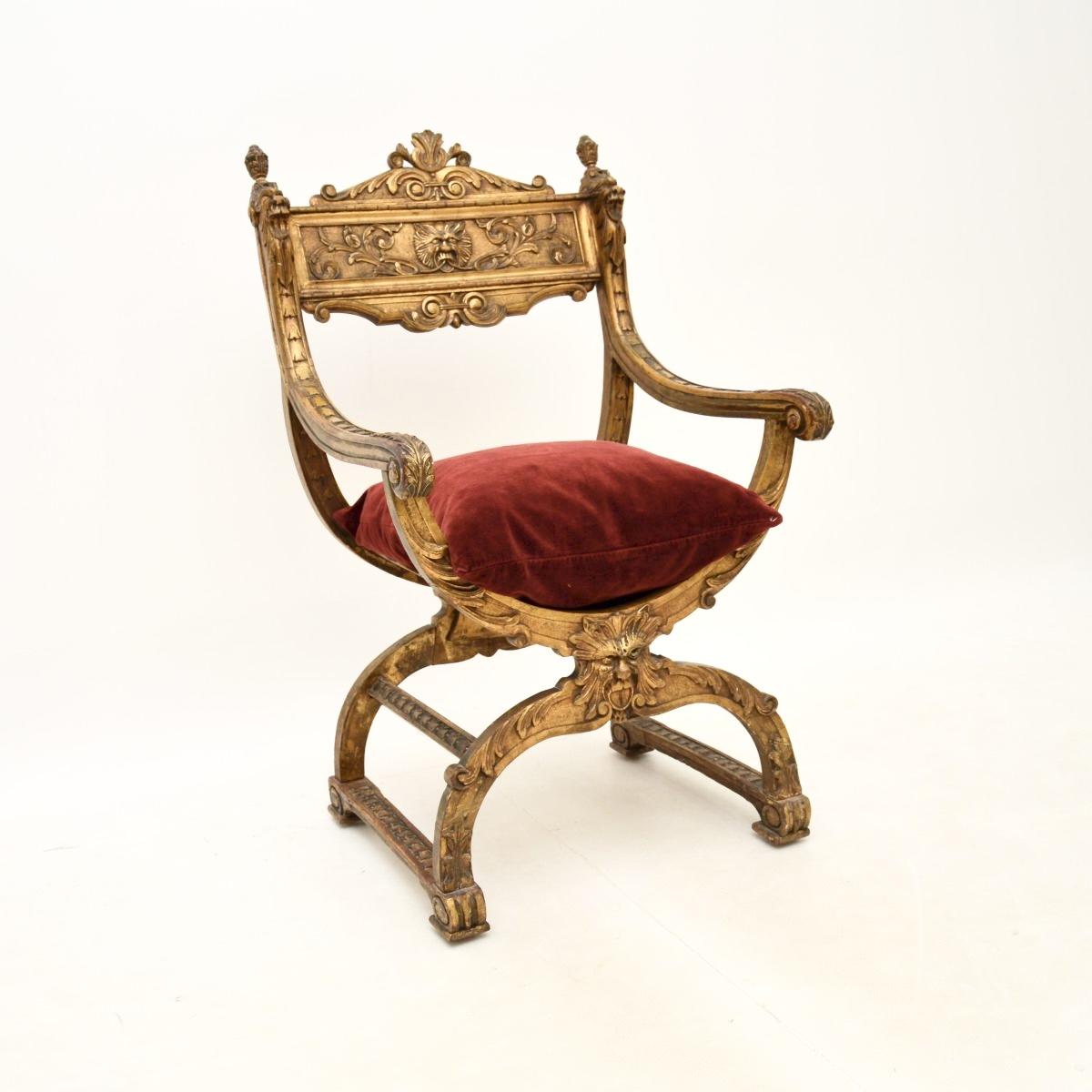 Antique Italian Gilt Wood Savonarola Chair (1 of 14)