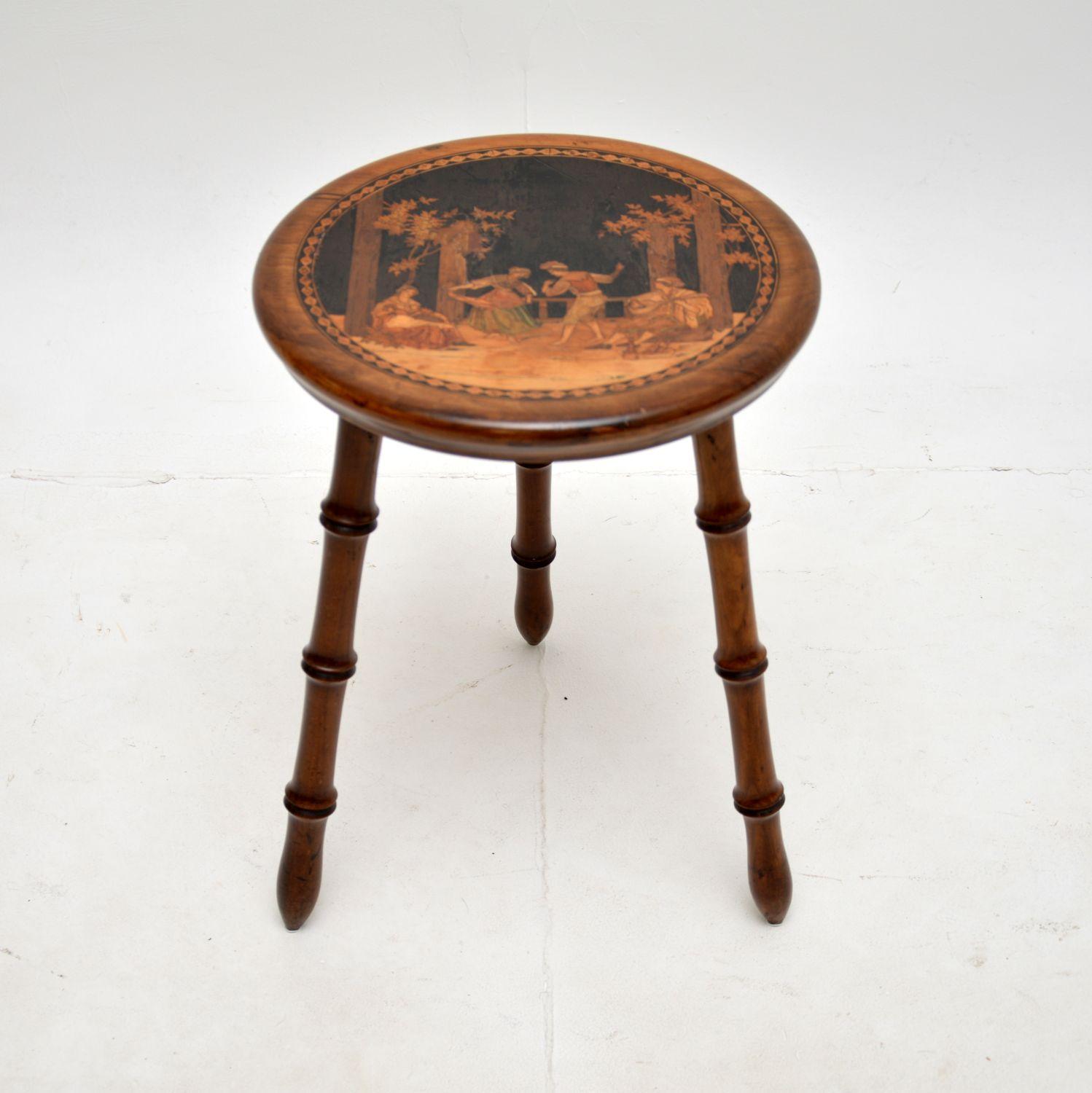 Antique Italian Inlaid Olive Wood Stool (1 of 9)