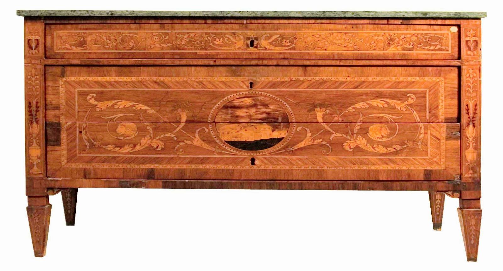 Antique Italian Maggiolini Chest of Drawers from 1700 in Walnut with Inlays