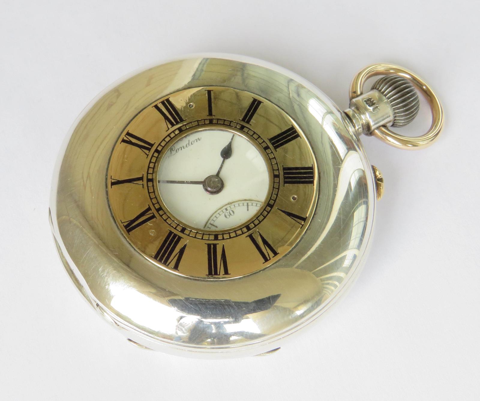 Antique J W Benson Silver & Gold Hunter Pocket Watch