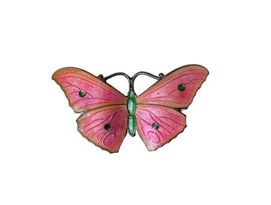 Antique JA & S John Atkins Sons Silver Guilloche Enamel Butterfly Brooch / Pin c.1915