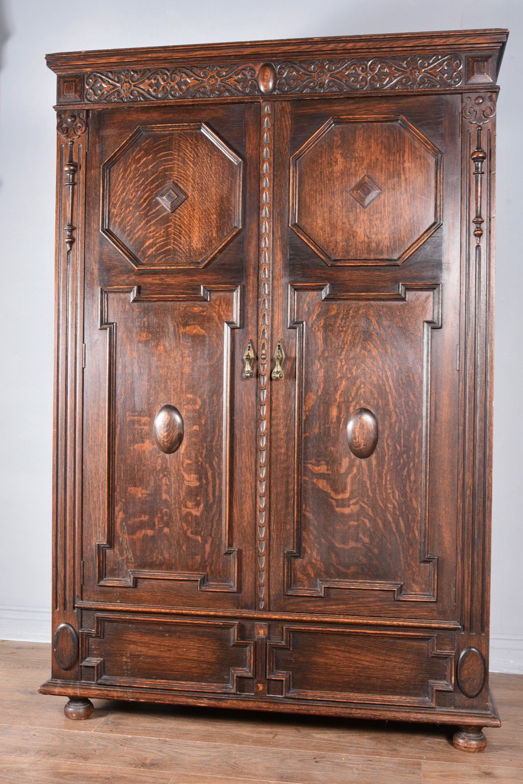 Antique Jacobean Oak Two Door Wardrobe