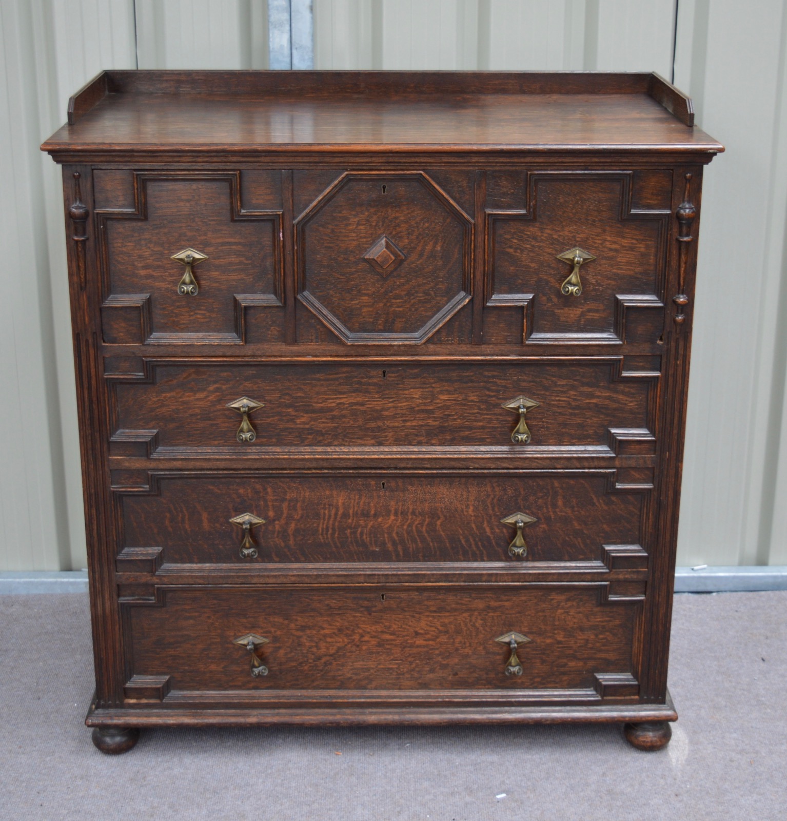Antique Jacobean Style Carved Oak Chest of Drawers c.1900