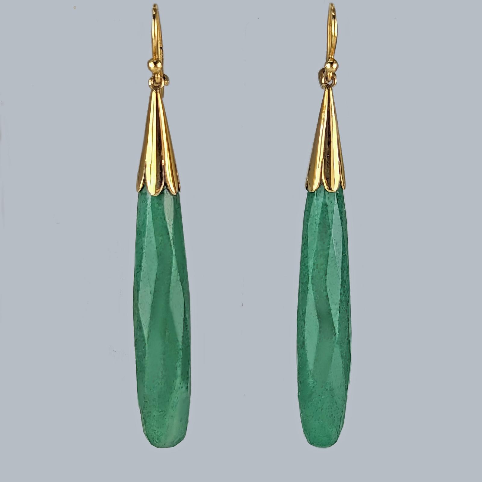 Antique Jade Drop Earrings 18ct Gold Teardrop Dangle Edwardian Earrings c.1910 (1 of 5)
