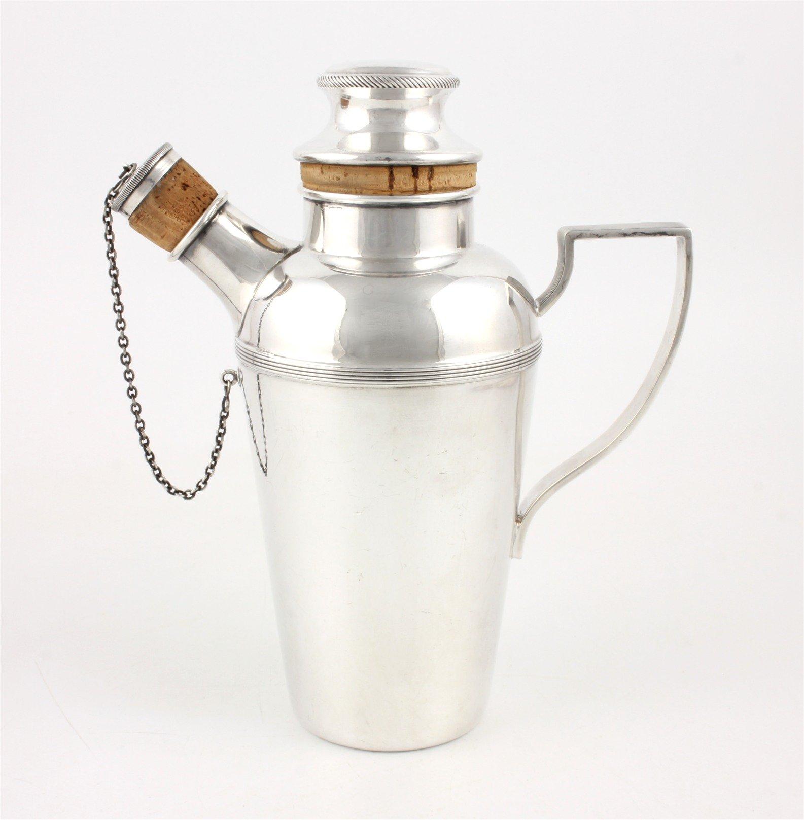 This stylish Art Deco cocktail shaker which dates from the first half of the 20th century is made of silver plate and is by renowned silversmith James Dixon & Sons.