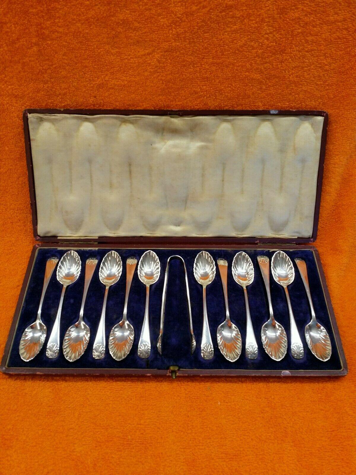 Antique James Dixon & Sons Silver Plate Shell Tea Spoon Set Cased C1890 Sheffield