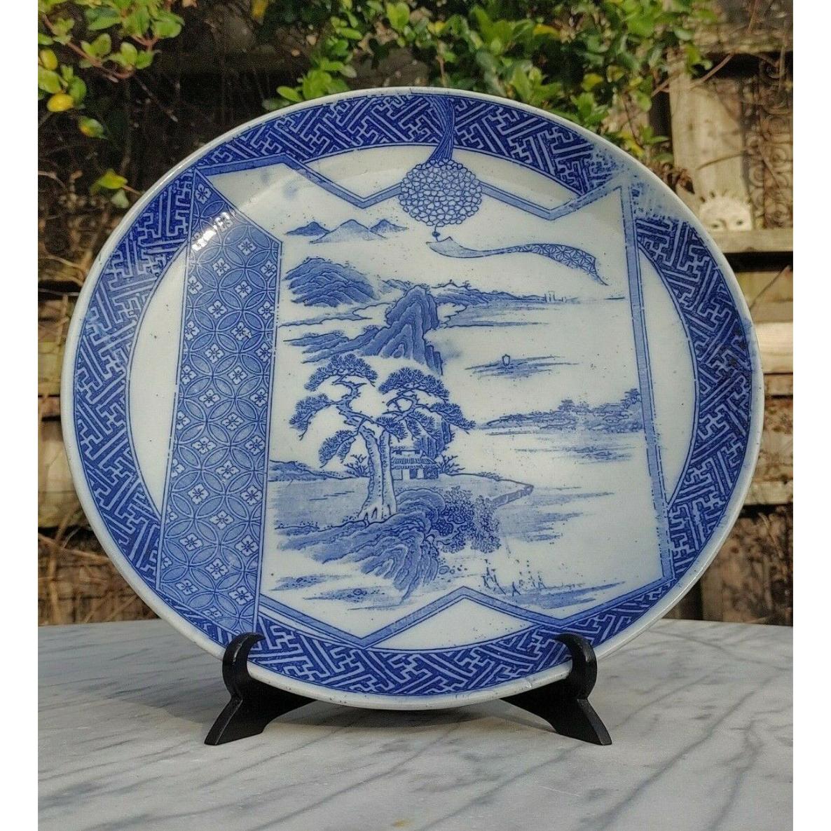 Antique Japanese Meiji Igezara Porcelain Blue & White Landscape Mount Fuji Plate
