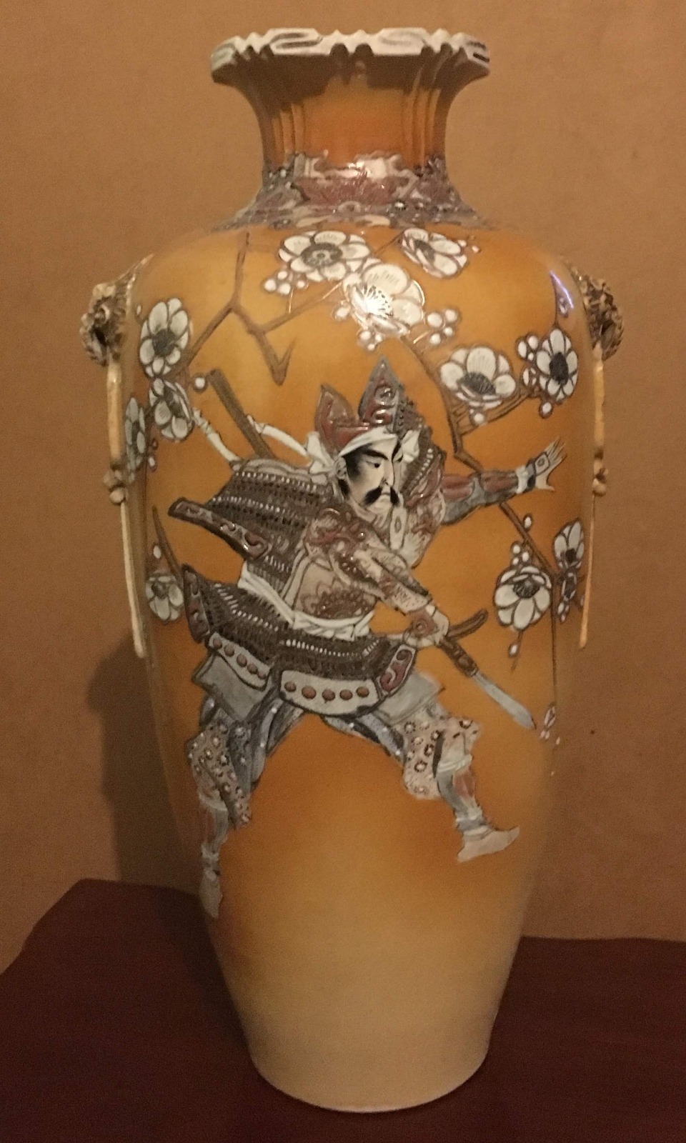 Antique Japanese Meiji Satsuma Vase with Samurai Decoration A/F 16” High