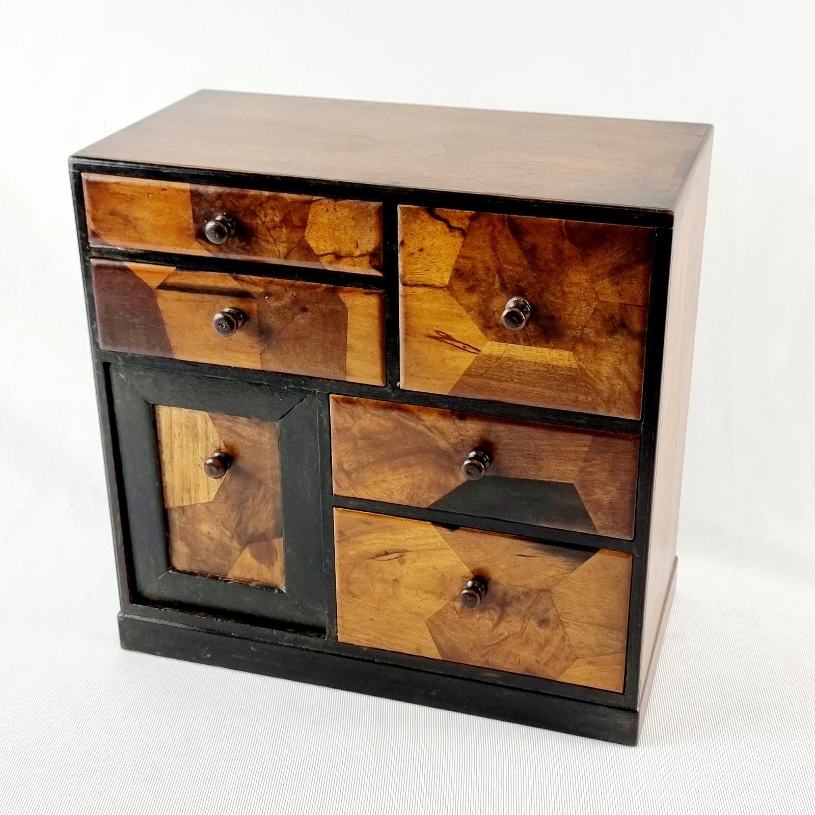 Antique Japanese Parquetry Tabletop Cabinet Meiji Period