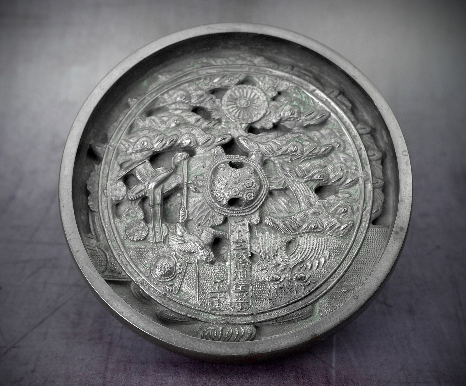 Antique Japanese Silvered Bronze Mirror, Edo Period 1615 - 1868