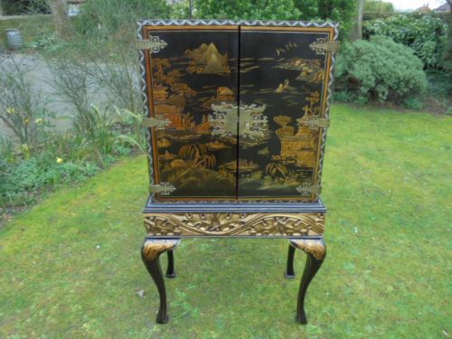 Antique Japanned Chinoiserie Cocktail Cabinet on Stand c.1900