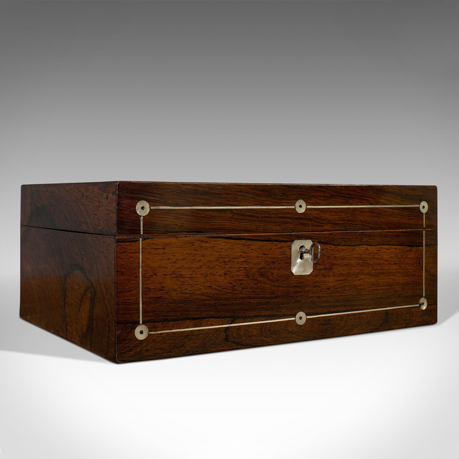 Antique Jewellery Box, English, Rosewood, Mother of Pearl, Sewing, Victorian