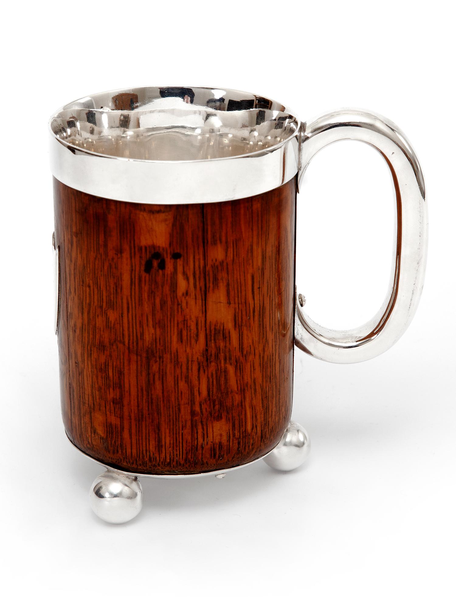 Antique John Grinsell & Son Oak and Silver Plate Half Pint Tankard