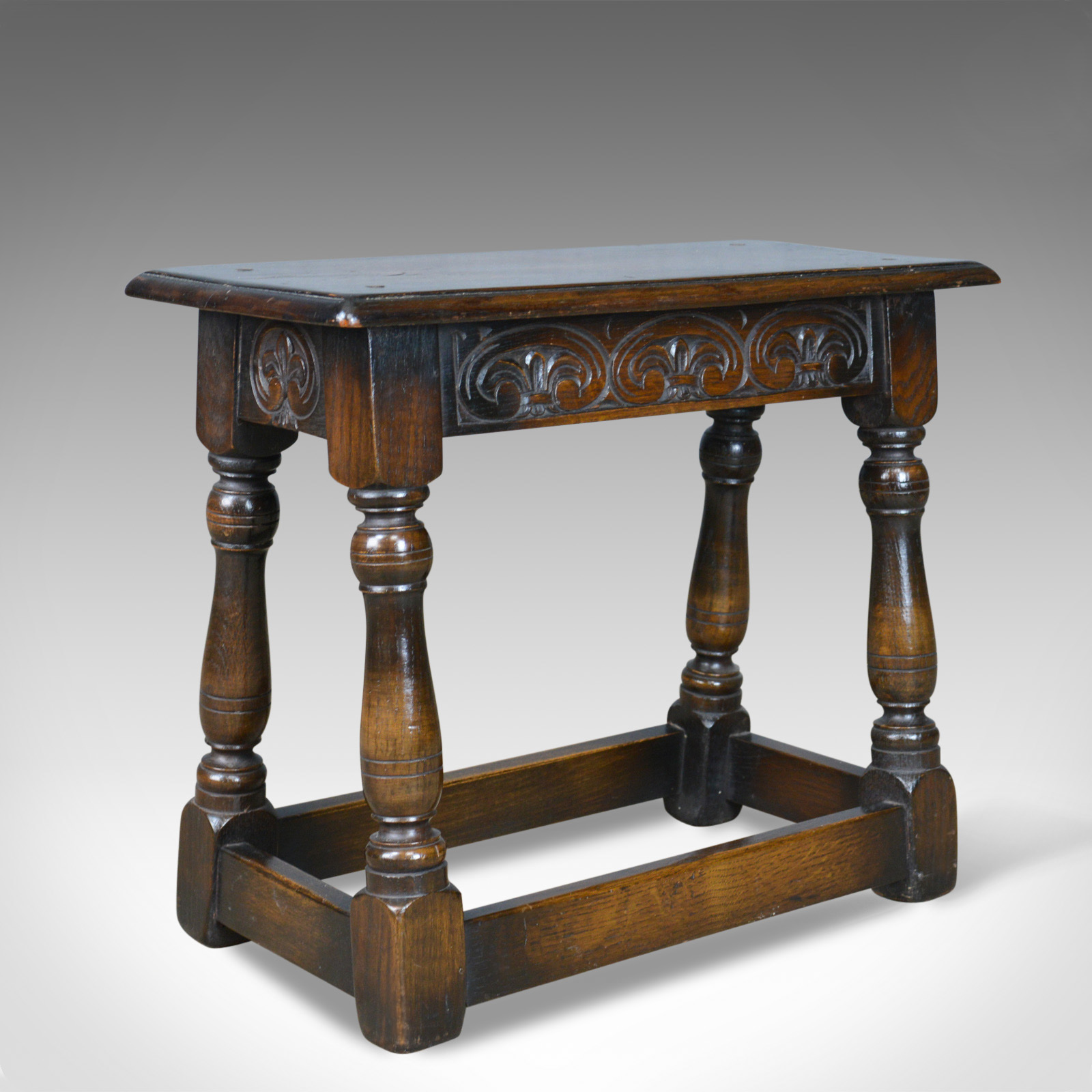Antique Joint Stool, English, Oak, Edwardian, Jacobean Revival
