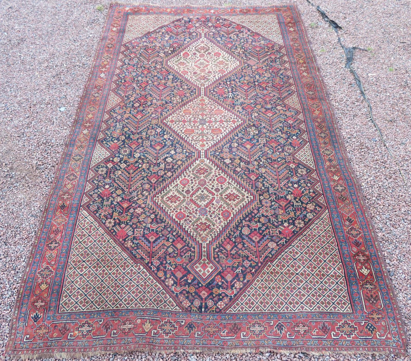 Antique Khamseh Tribal Main Carpet - Rare Tribal Khan Figures. c1870