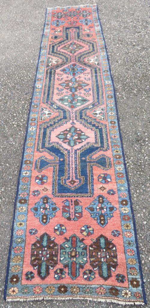 Antique Kurdish Narrow Runner. Salmon Pink Ground - Quirky Peacocks