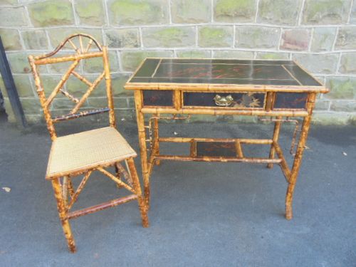 Antique Lacquered Bamboo Writing Table & Chair c.1880 (1 of 1)