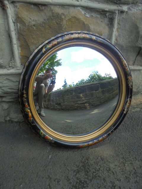 Antique Lacquered Chinoiserie Convex Mirror c.1900 (1 of 1)