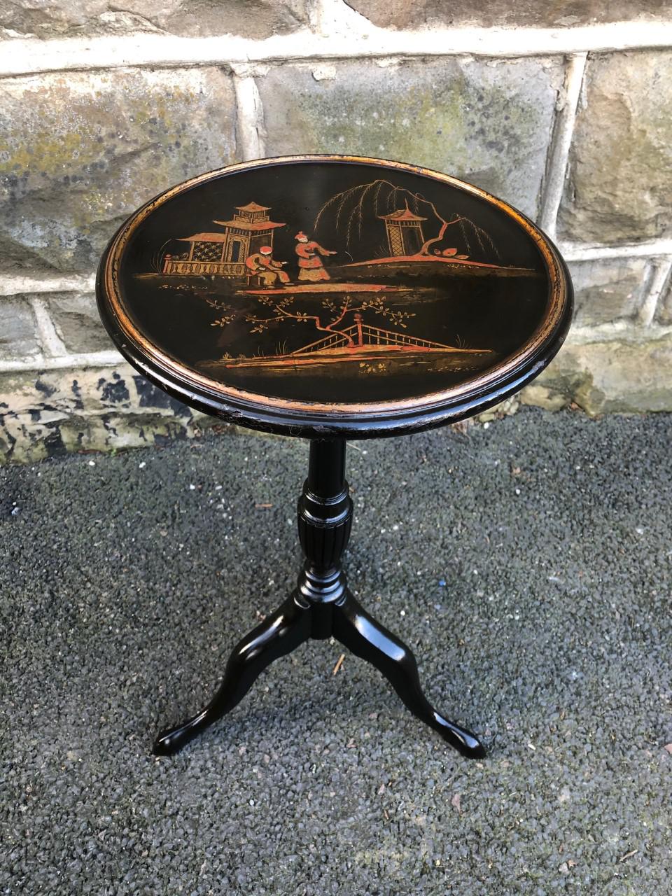 Antique Lacquered Chinoiserie Tripod Wine Table
