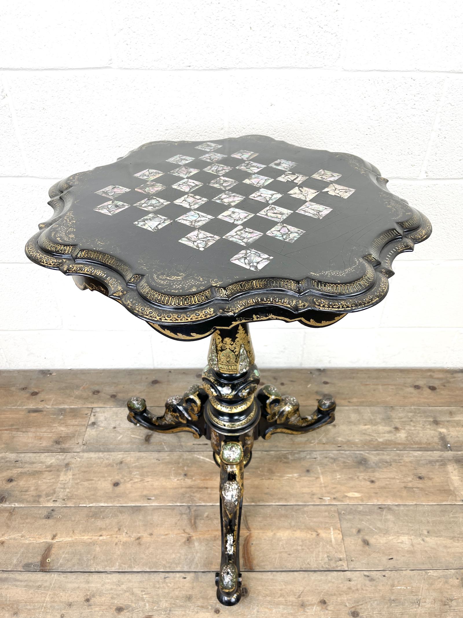 Antique Lacquered & Inlaid Chess Table (1 of 10)