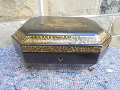 Antique Lacquered & Ivory Chinese Export Sewing Box c.1830