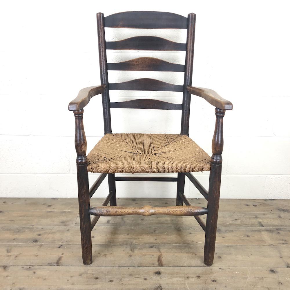 Antique Ladder Back Armchair with Rush Seat