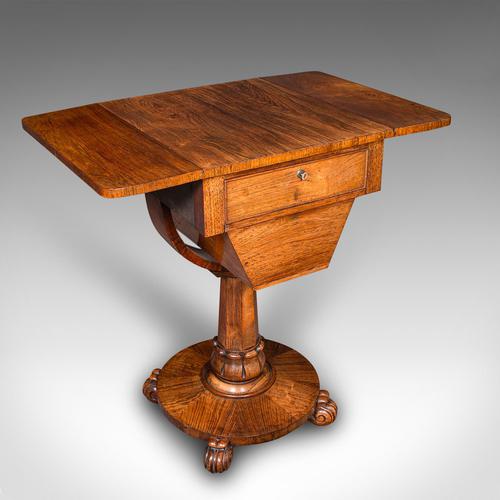 Antique Ladies Work Table, English, Drop-leaf, Sewing, Games, William IV, C.1835