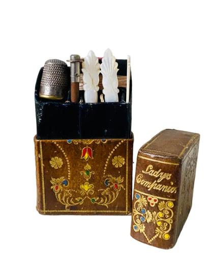 Antique Lady's Companion Book Form Tooled Leather Sewing Etui / Set c.1880