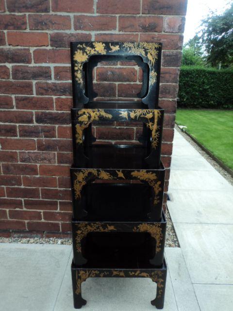 Antique Laquered Chinoiserie Japanned Stacking Nest of Tables c.1900