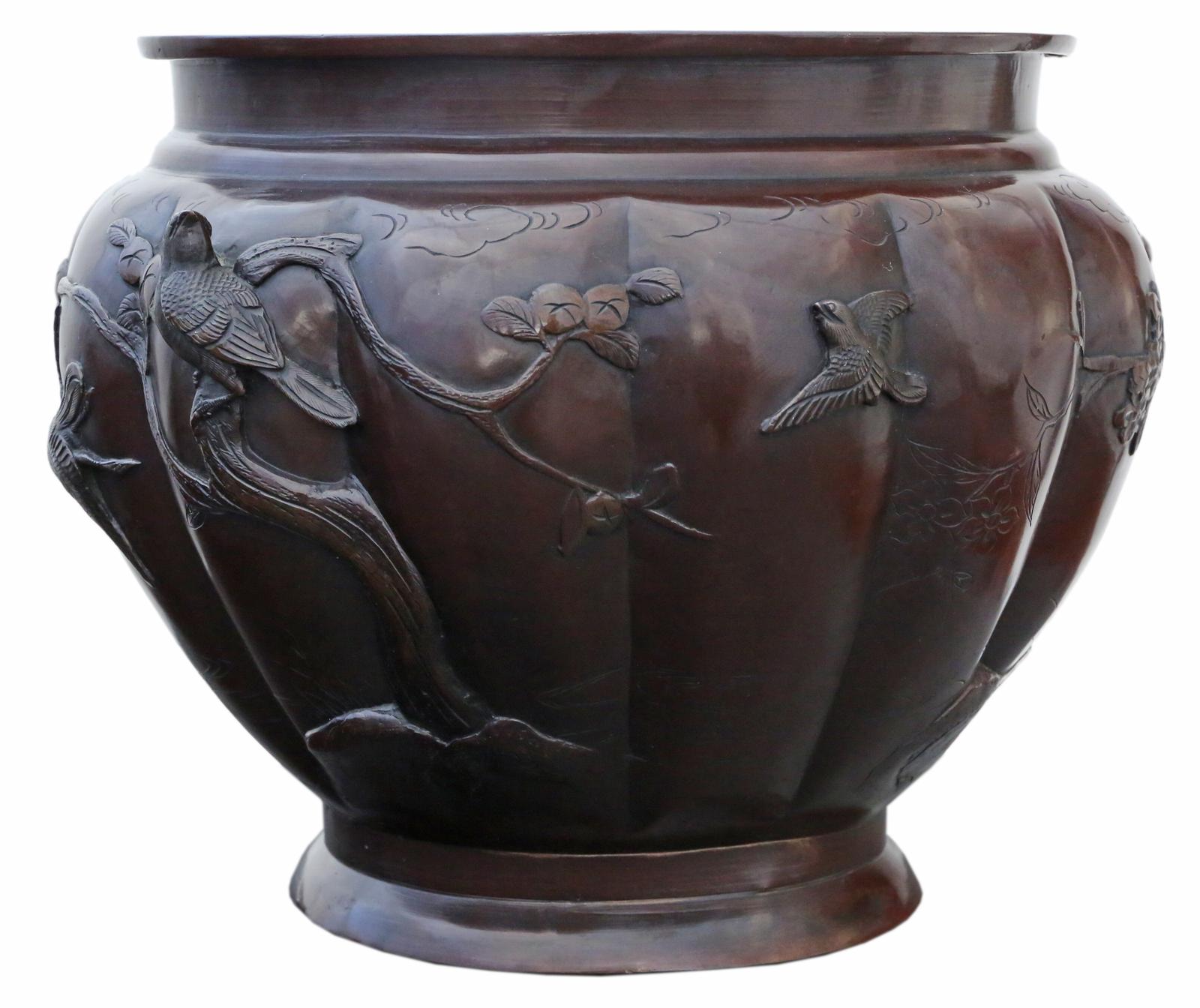 Antique Large 15" Fine Quality Japanese Oriental Bronze Jardinière Planter Bowl Censor Meiji Period 19th Century (1 of 9)