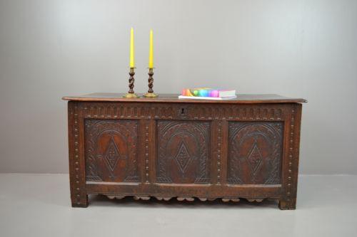 Antique Large 19th Century Carved Oak Panelled Coffer