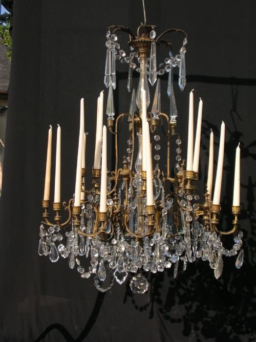 Antique Large 19th Century Gilt Bronze & Crystal French Chandelier
