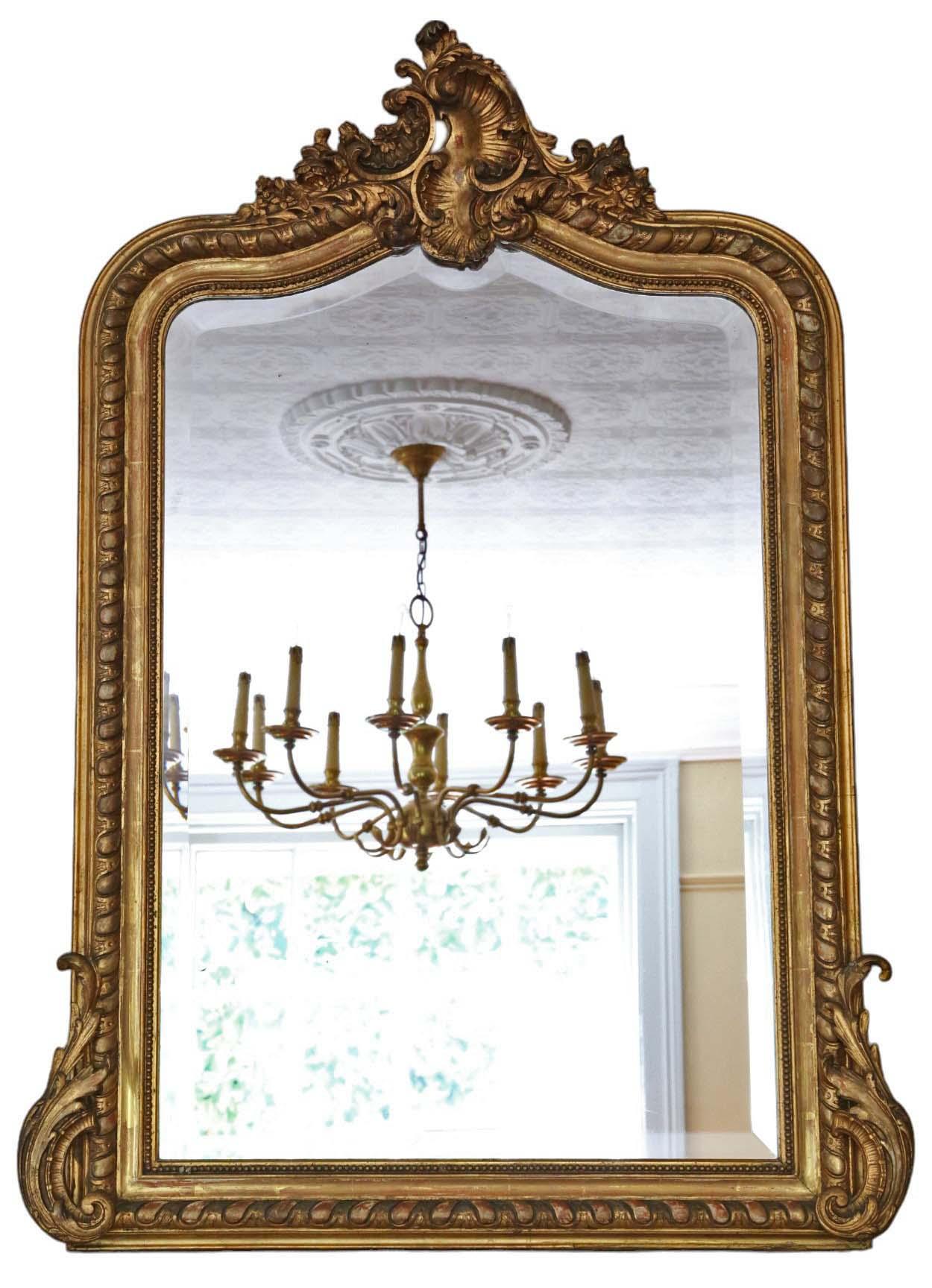 Antique Large 19th Century Gilt Overmantle Wall Mirror – High-Quality Ornate Design (1 of 6)