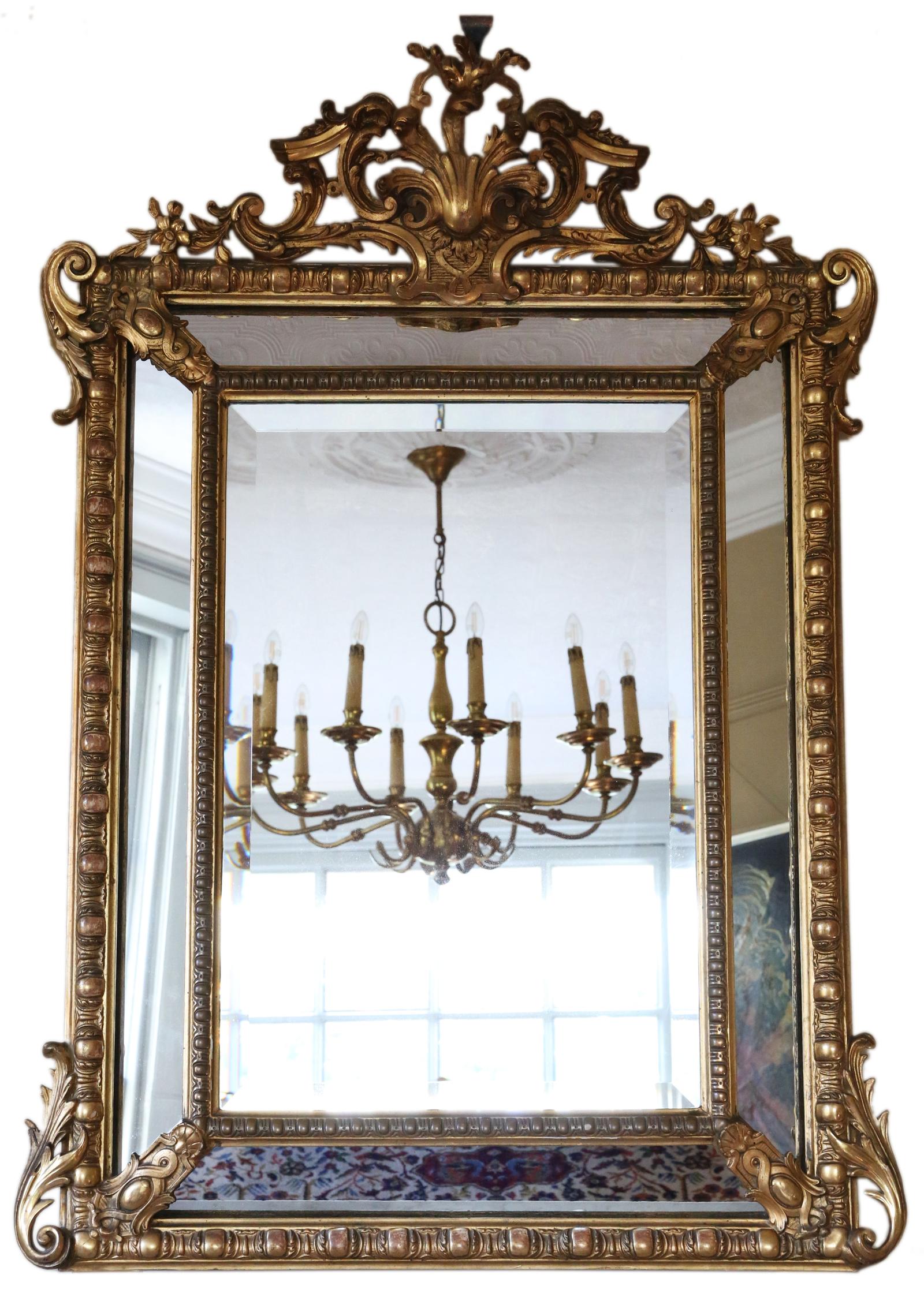 Antique Large Fine Quality Decorative Gilt Overmantle Cushion Wall Mirror 19th Century
