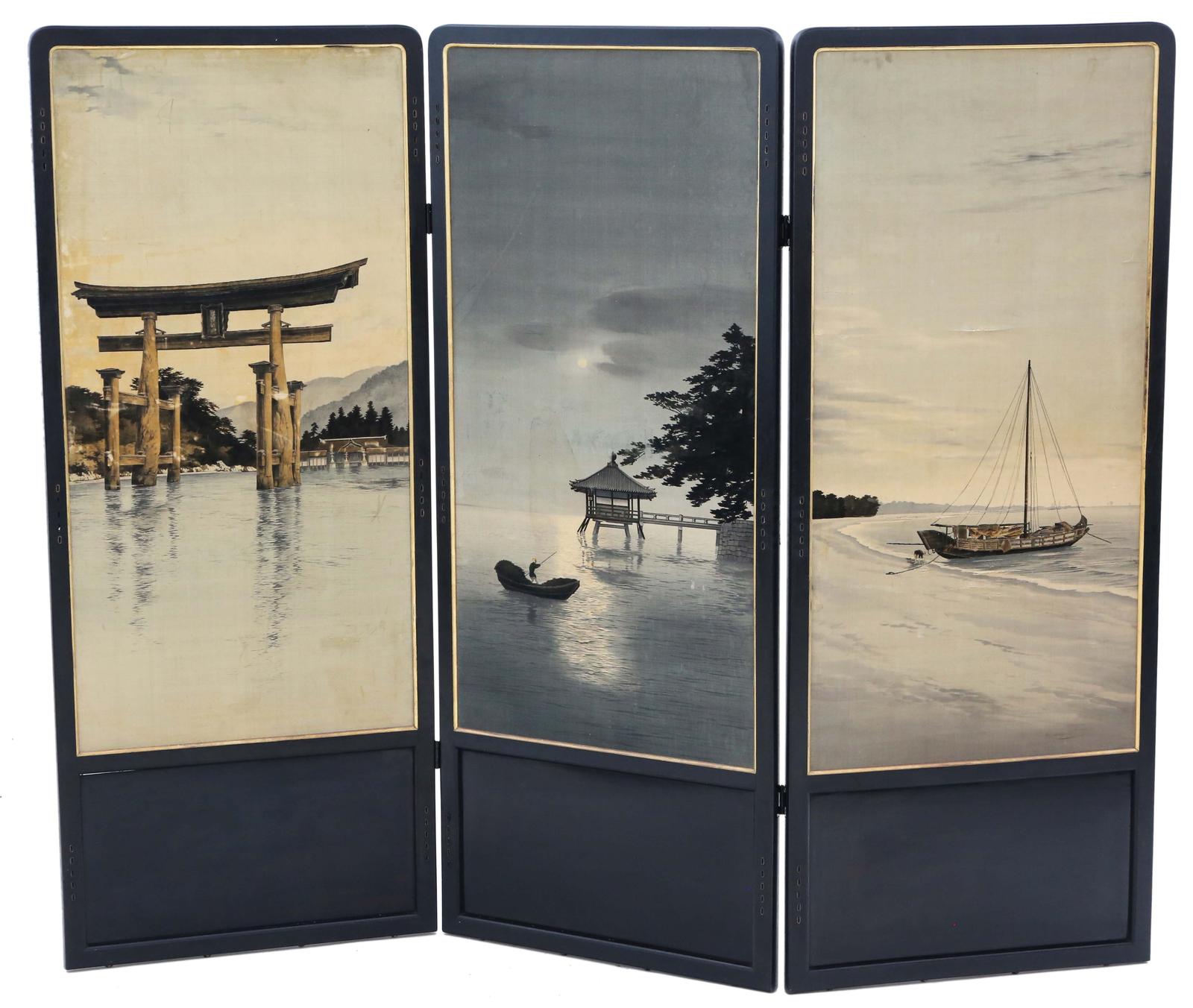 Antique Large Fine Quality Oriental Japanese / Chinese C1900 Black Lacquer Dressing Screen Room Divider