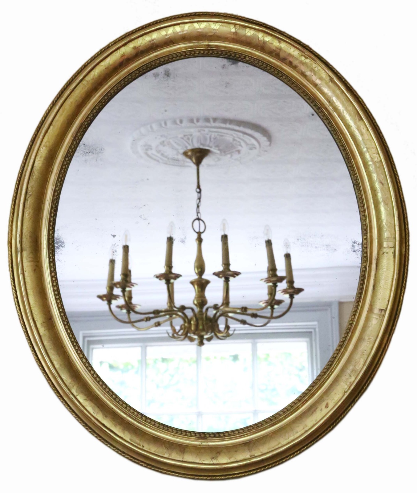 Antique Large Fine Quality Oval 19th Century Gilt Overmantle Wall Mirror