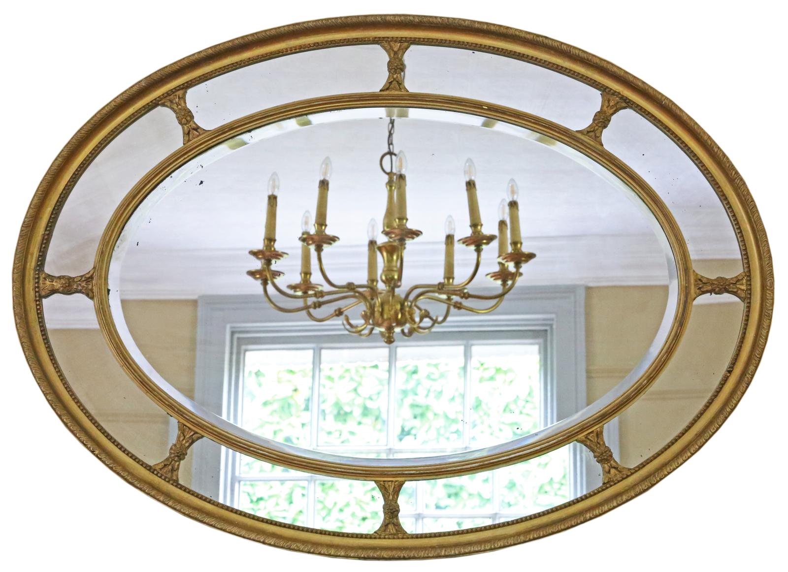 Antique Large Fine Quality Oval Gilt Overmantle Cushion Wall Mirror 19th Century (1 of 6)
