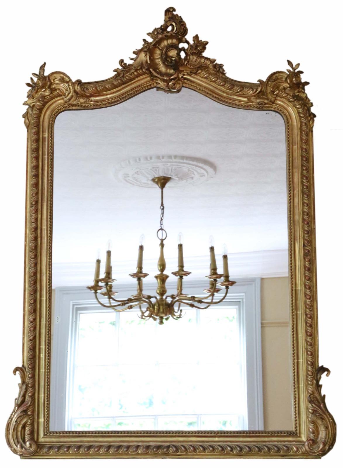 Antique Large Fine Quality Victorian Gilt Overmantle Wall Mirror 19th Century