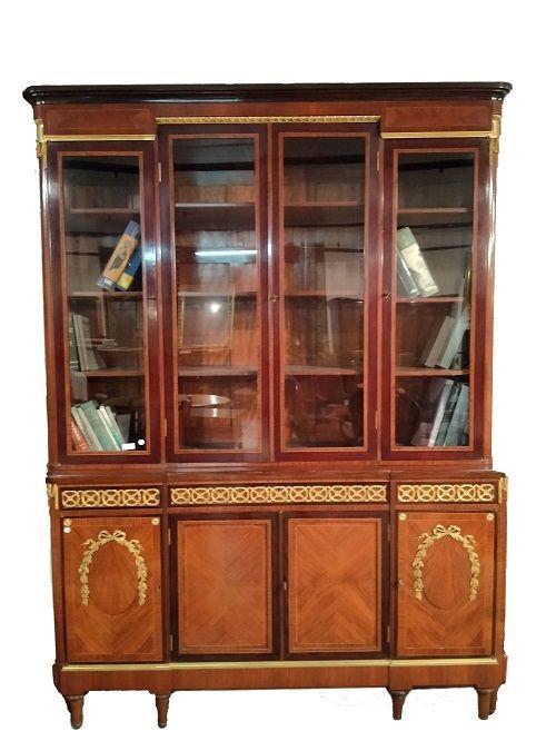 Antique Large French Louis XVI Display Cabinet Bookcase from 1800 in Blond Mahogany