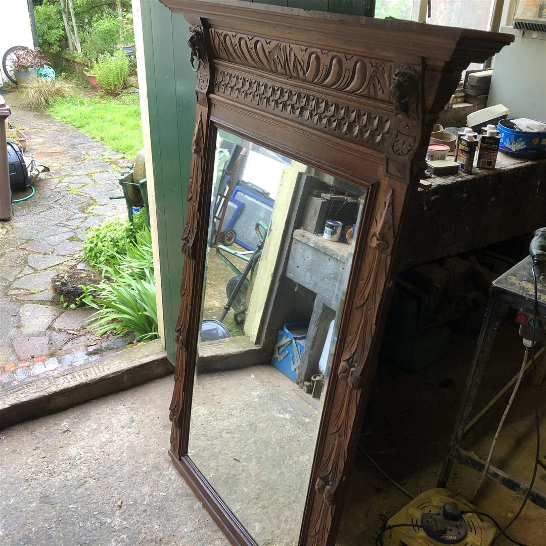 Antique Large French Oak Mirror in Carved Lion Head Frame 1910s (1 of 12)