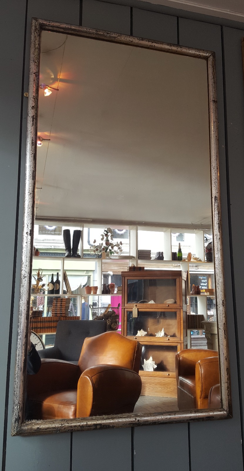 Antique Large French Silver Gilded Bistro Mirror