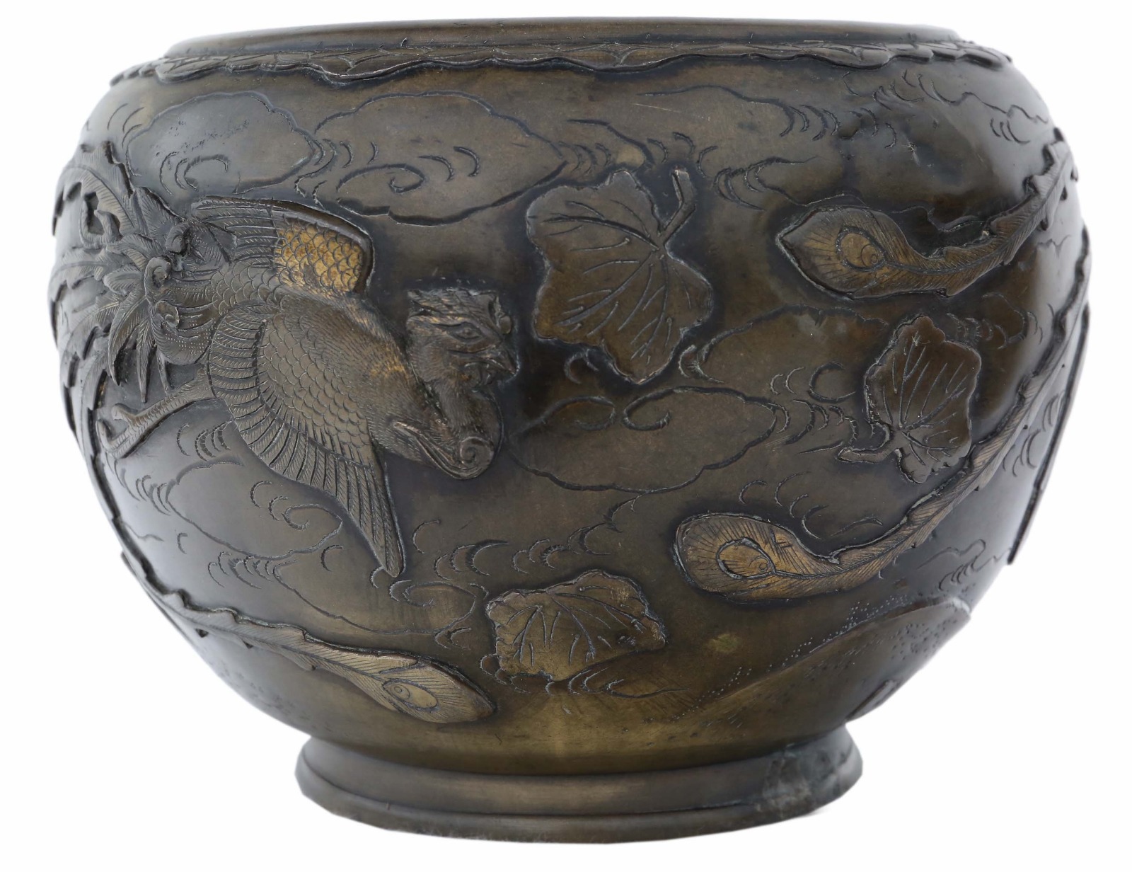 Antique Large Oriental Early 20th Century Bronze Jardiniere Planter Bowl (1 of 7)