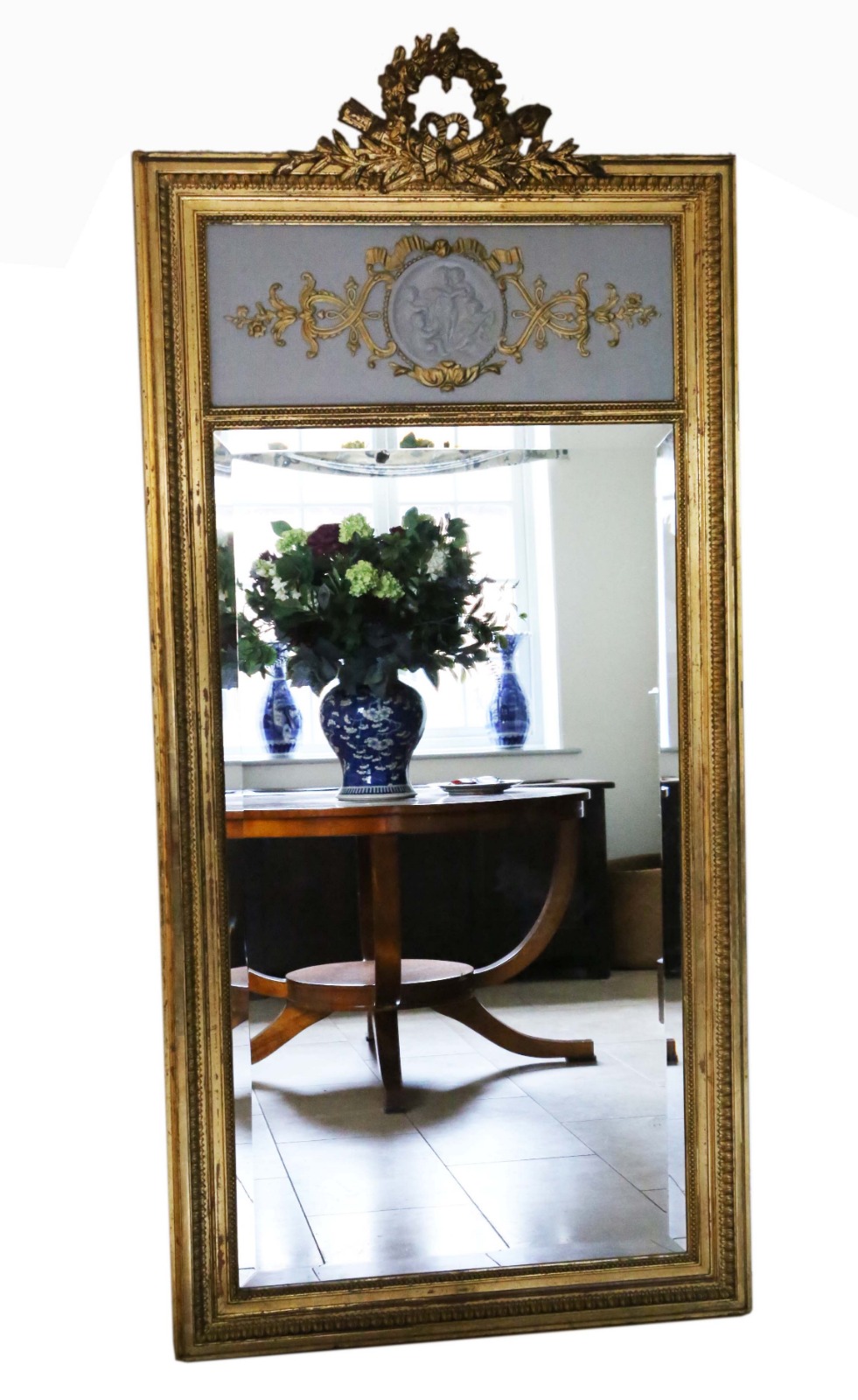 Antique Large Quality 19th Century Gilt Full Height Wall Mirror Trumeau