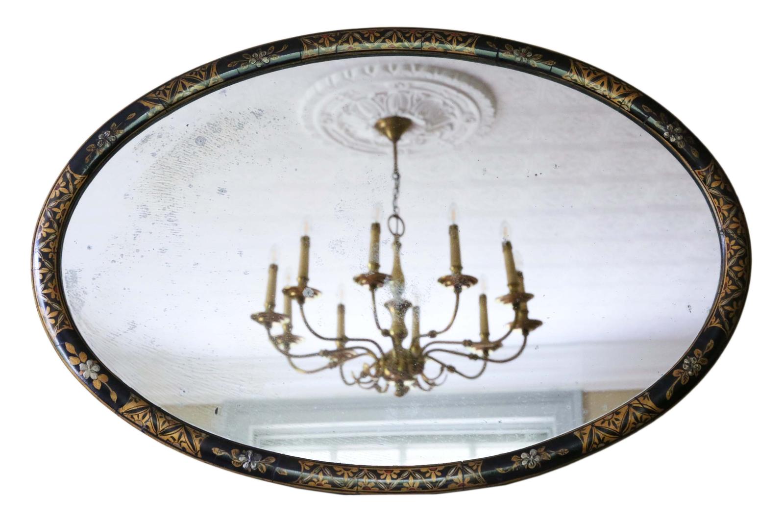 Antique Large Quality Decorated Black Lacquer Oval Wall Overmantle Mirror C1915 (1 of 7)
