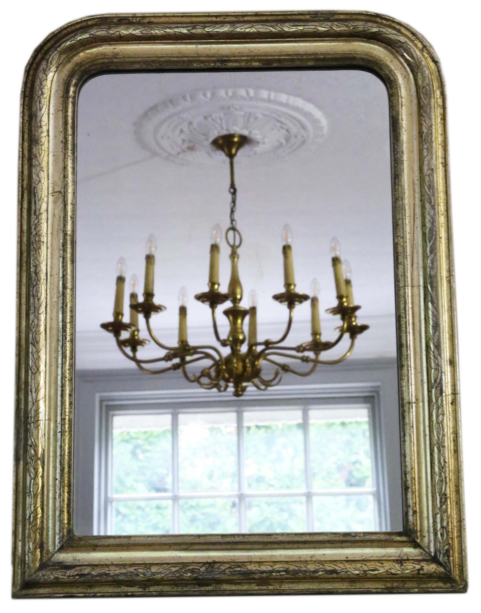 Antique Large Quality French 19th Century Gilt Overmantle Wall Mirror