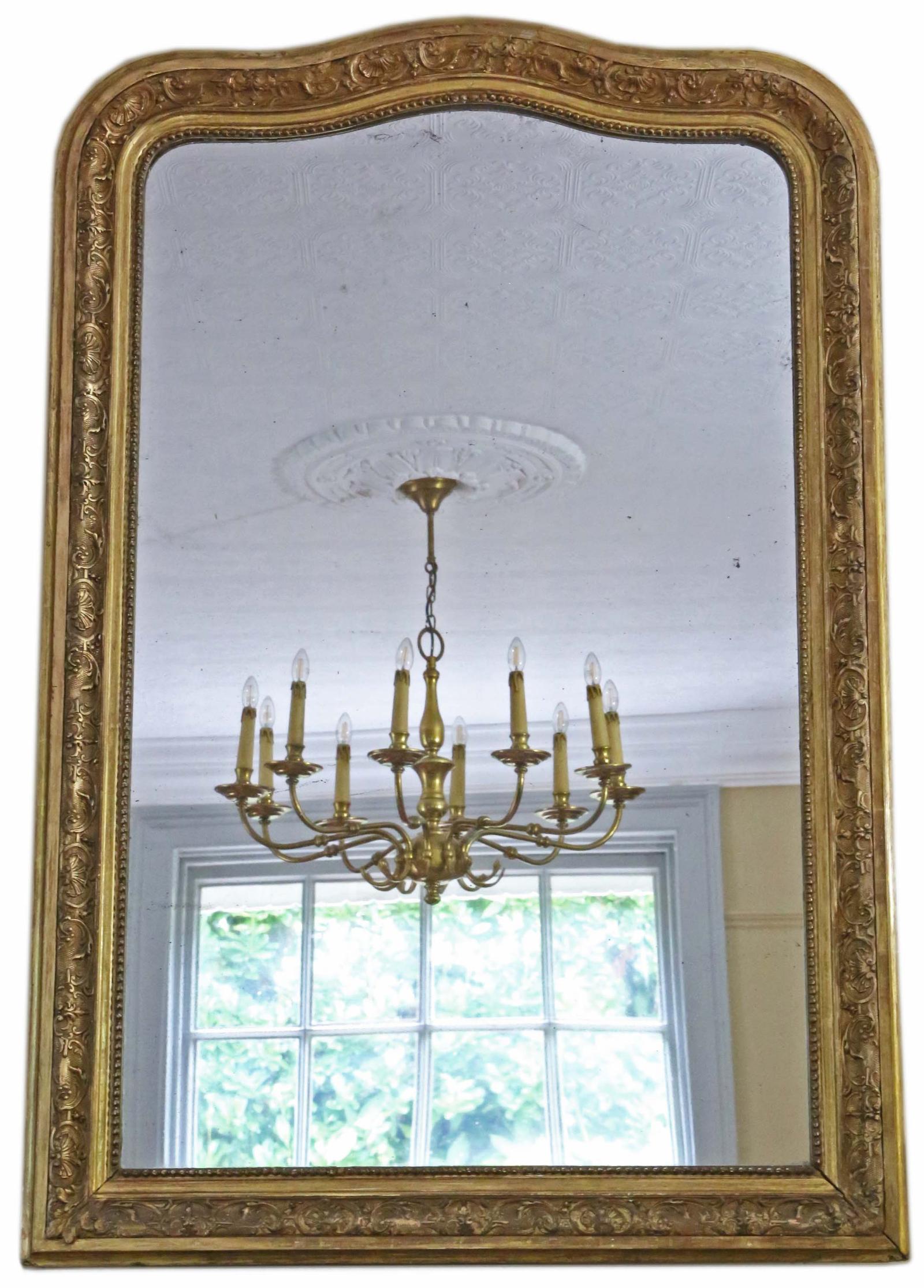 Antique Large Quality French Gilt Overmantle Wall Mirror 19th Century
