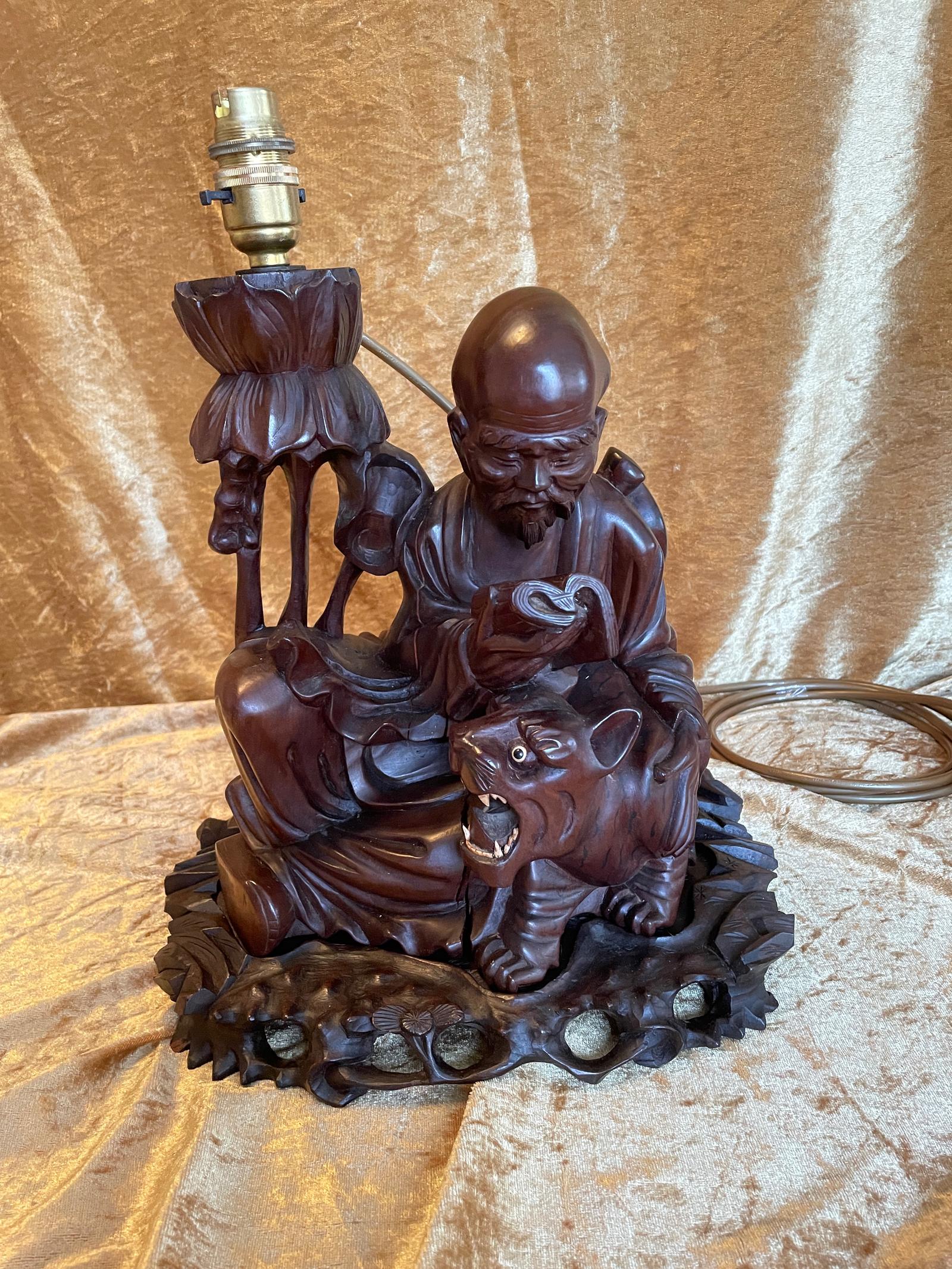 Antique Late 19th Century Chinese Carved Root Wood Lamp