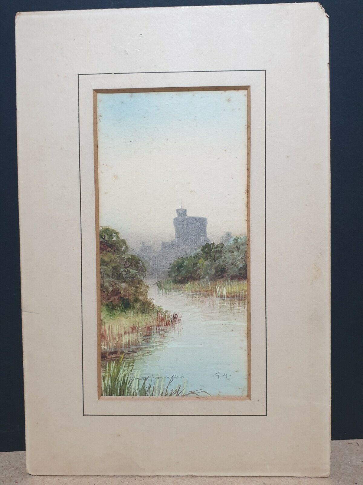Antique Late 19th Century Italian Watercolor Landscape on Card
