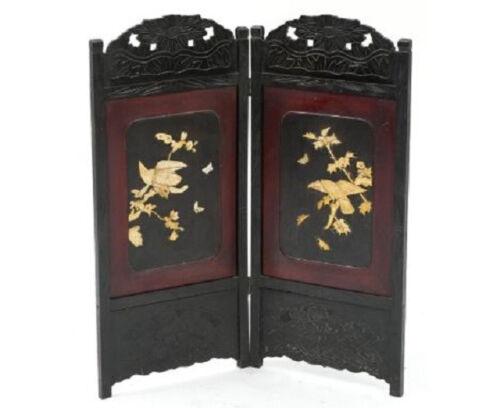 Antique Late 19th Century Qing Chinese Black Laquer Folding Screen